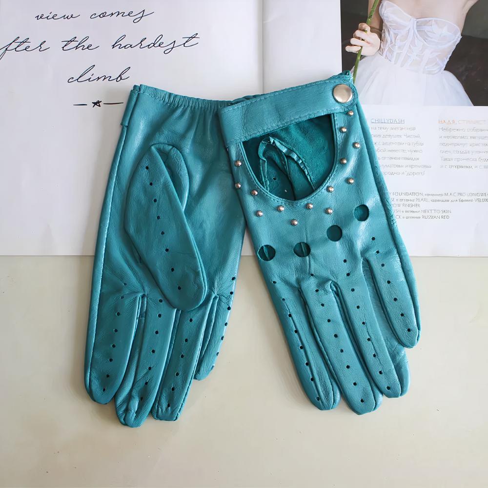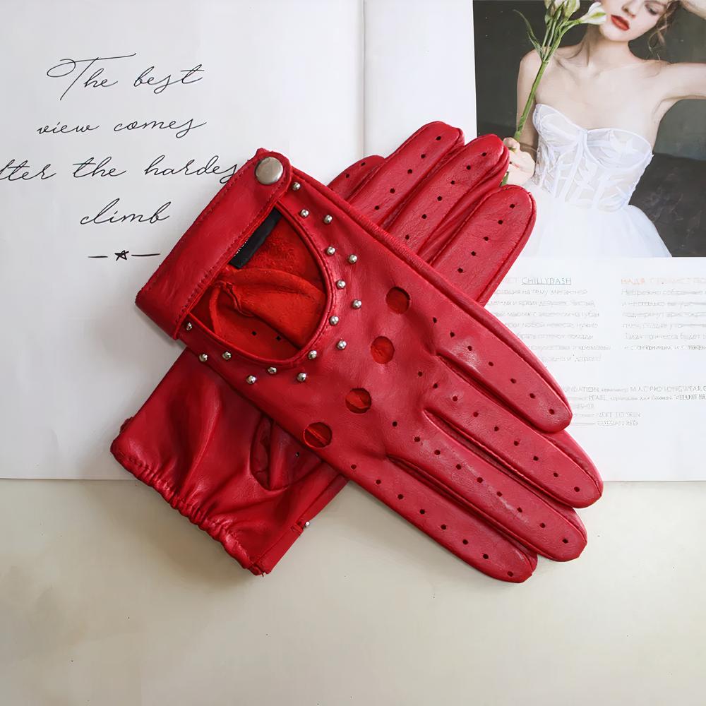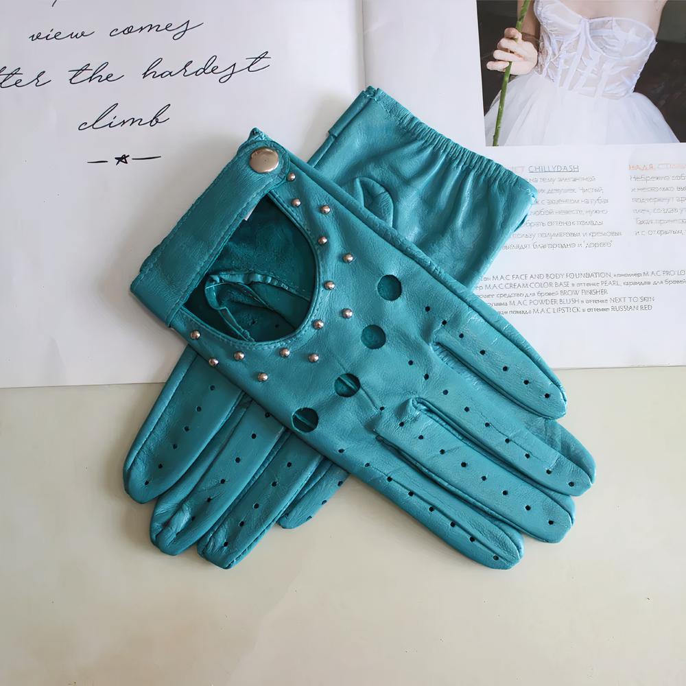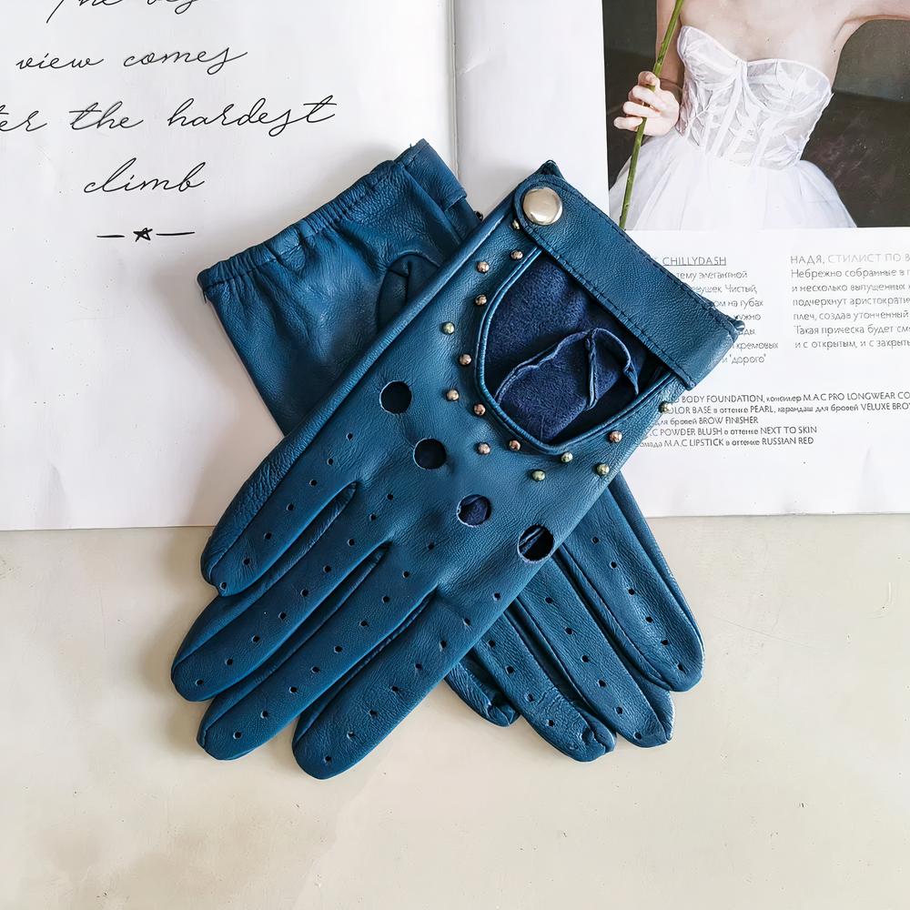 Ces gants de conduite femme en cuir à rivets sont tendance et stylés, confortables et respirants et vous apporteront un petit côté chic en plus. Le cuir véritable dont ils sont faits est souple et parfaitement adapté à la conduite. Ils sont déclinés en neuf couleurs intemporelles au choix.