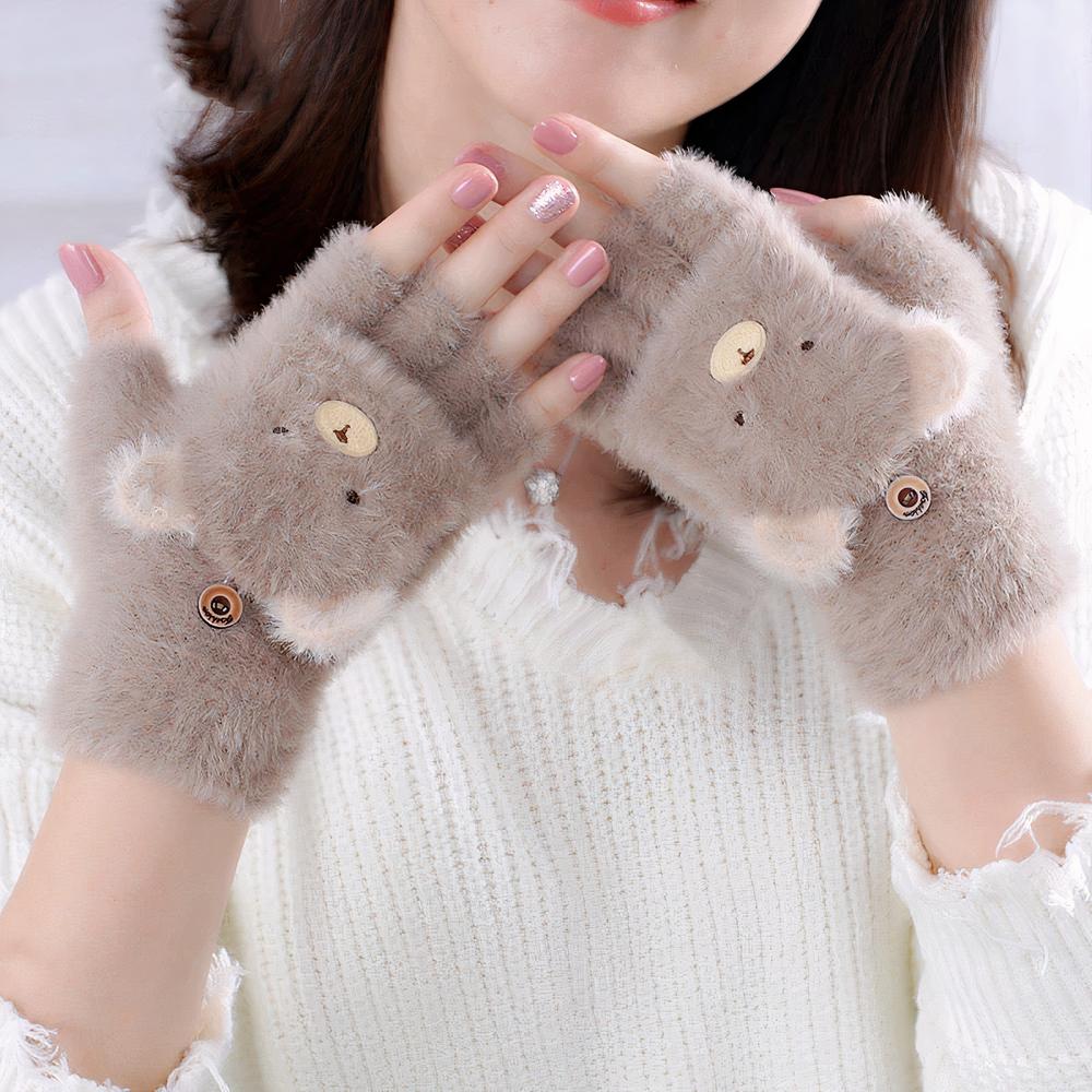 Gants femme hiver en cachemire mitaines à rabat tête d’ours