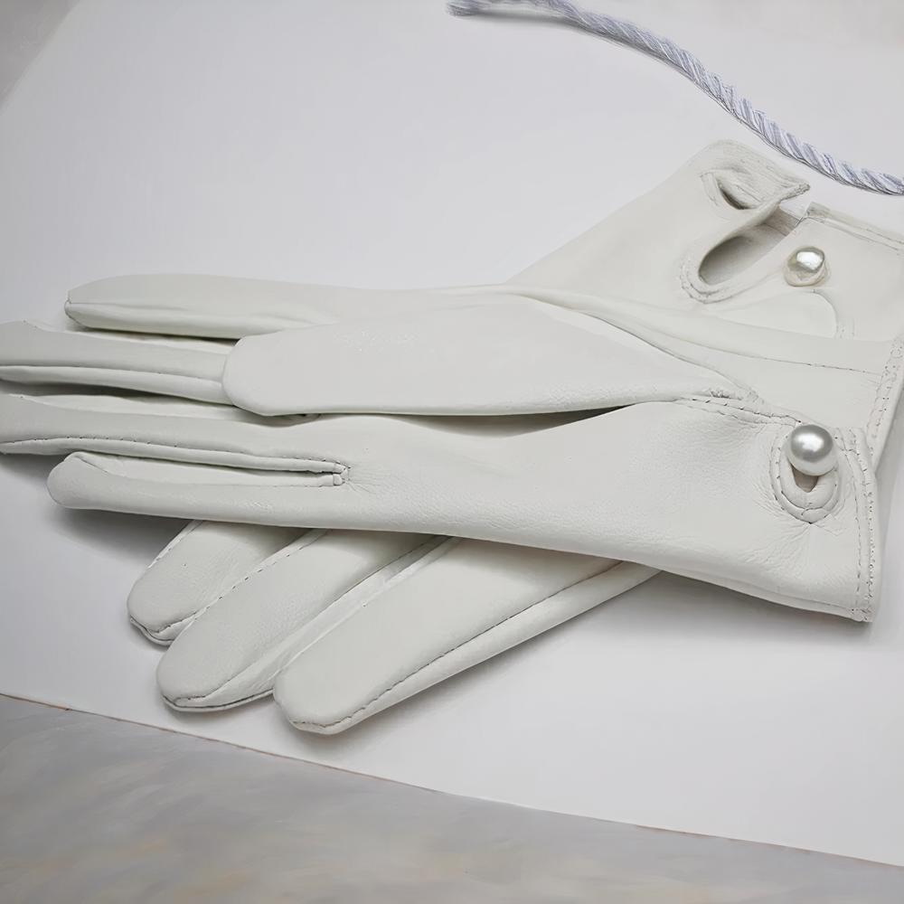 Gants cuir femme fermeture bouton rond nacré