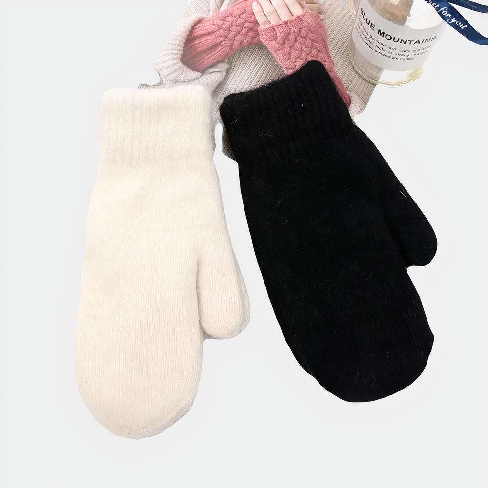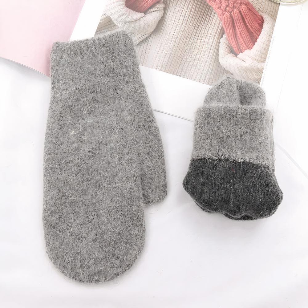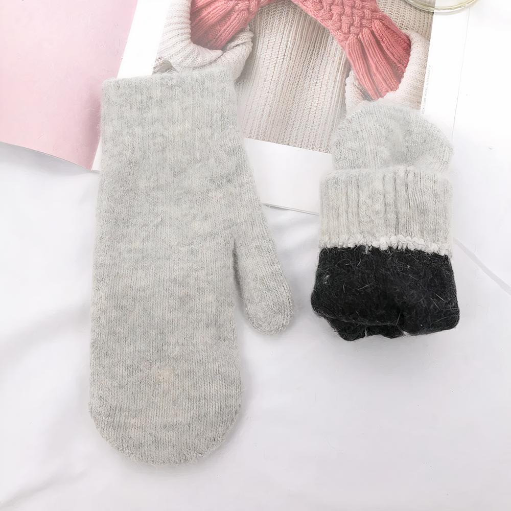 Gants femme en laine et cachemire style moufles