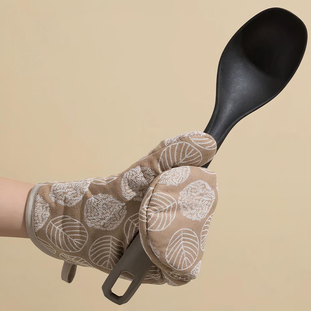 Ce gant de cuisine est doté d'une doublure qui le rend confortable à porter et facile à nettoyer. Sa longueur généreuse protège non seulement vos mains, mais aussi vos avant-bras des brûlures potentielles. De plus, sa texture antidérapante assure une prise en main sûre et stable des ustensiles et plats chauds.