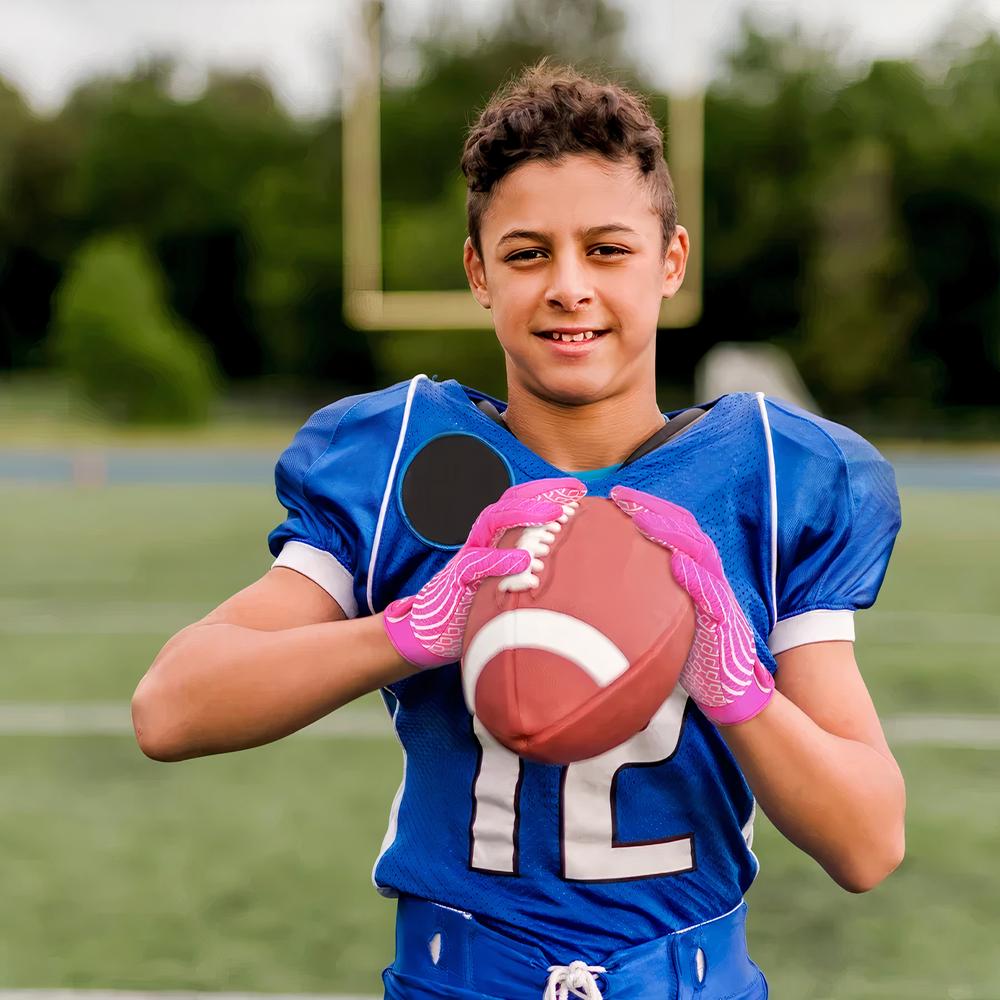Conçus pour le joueur au poste de receveur, de "quarterback" ou de "punter", de "holder" ou de défenseur, ces gants sont légers, flexibles et très ajustés pour avoir un bon contrôle du ballon. Faciles à entretenir, lavables, ils sèchent rapidement. Comme les gants adulte, ils sont munis d'éponge au niveau du pouce pour éponger la sueur. LA manchette de fermeture comprend une boucle et un crochet pour un ajustement sécurisé : le bouton pression est simple à manipuler.