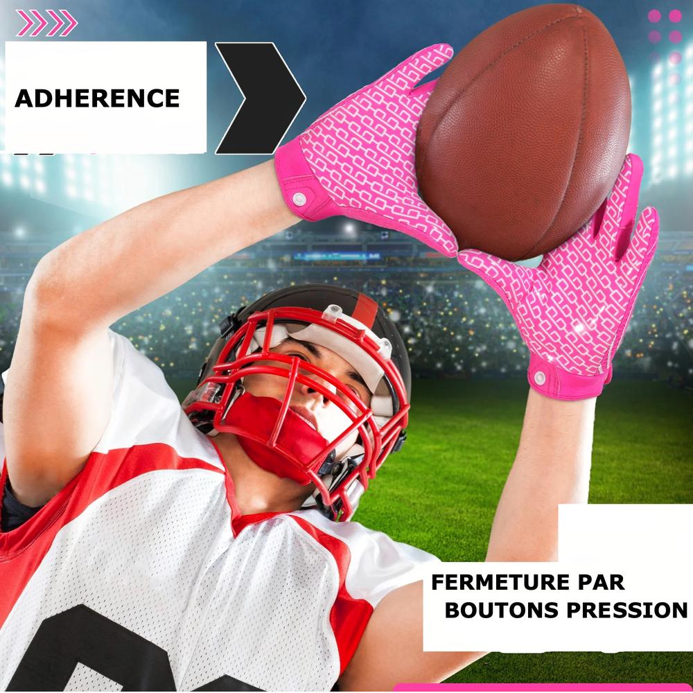 Ces gants de football américain receveurs pour garçons et filles sont idéaux également pour tous les postes de jeu demandant les mêmes caractéristiques comme une bonne adhérence pour attraper le ballon, une grande élasticité pour la liberté de mouvements et un bon ajustement. Le côté respirant est en plus.